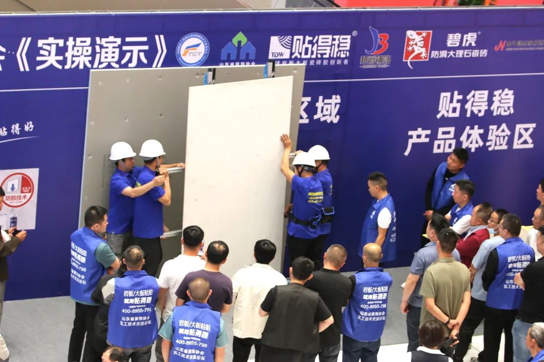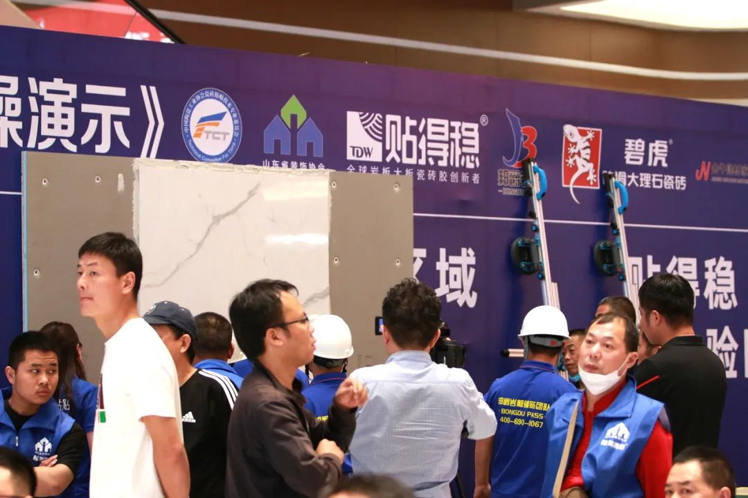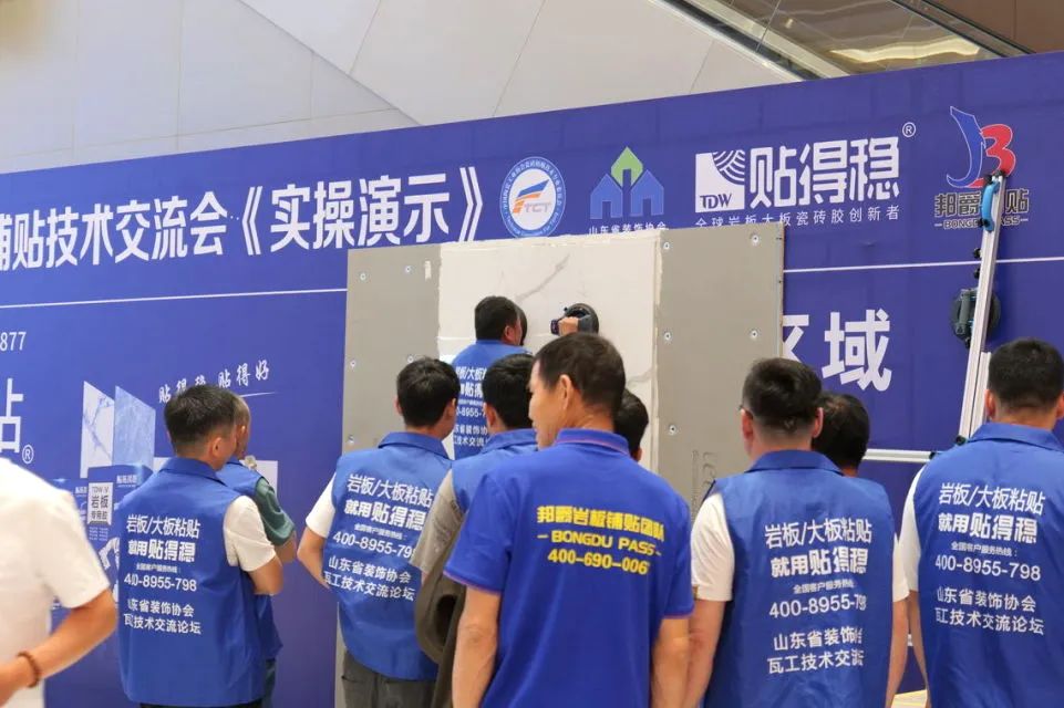 The purpose of this exchange meeting is to gather elites in the industry to jointly discuss the cutting-edge developments of rock slab paving technology, share innovative achievements, contribute to the progress of the industry, and announce the official launch of the "Technical Regulations for Rock Slab Pasting Engineering" in Shandong Station. Through practical operation, in-depth explanation, interactive communication and other forms, the process and process of rock slab paving technology were fully displayed, making people deeply feel the perfect integration of main materials, auxiliary materials and exquisite skills.